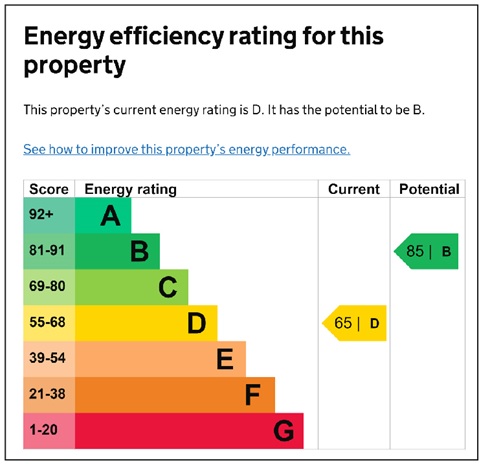 An Energy Performance Certificate (EPC) provides an energy efficiency rating in relation to the property’s running costs. The energy efficiency rating will take into account the potential energy performance of the property itself (the fabric) and its services.
