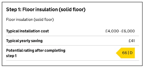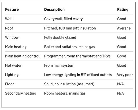 The individual features (floor, lighting wall etc) assessed as part of the energy assessment are also provided with an energy performance rating within the EPC.