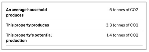 The EPC currently shows the environmental impact as an A to G rating allowing you to draw comparisons with average households.